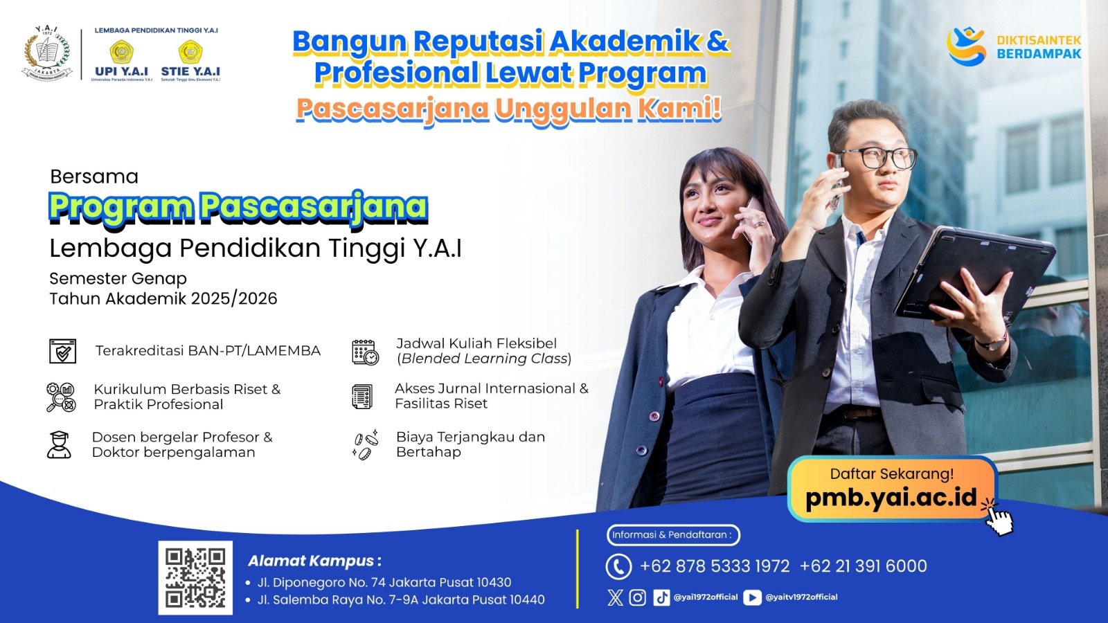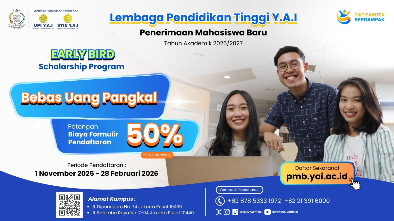 Dengan semangat memberikan informasi terbaik kepada masyarakat pendidikan, khususnya mahasiswa dan mahasiswi Lembaga Pendidikan Tinggi Yayasan Administrasi Indonesia (LPT Y.A.I), lewat media online ini kami dengan bangga memberikan informasi-informasi yang dibutuhkan baik sarana dan prasana pendidikan, kegiatan akademik, profil kampus serta informasi-informasi penting lainnya.
