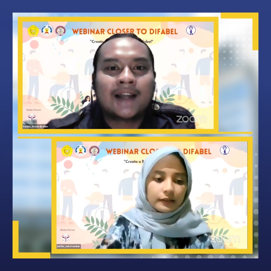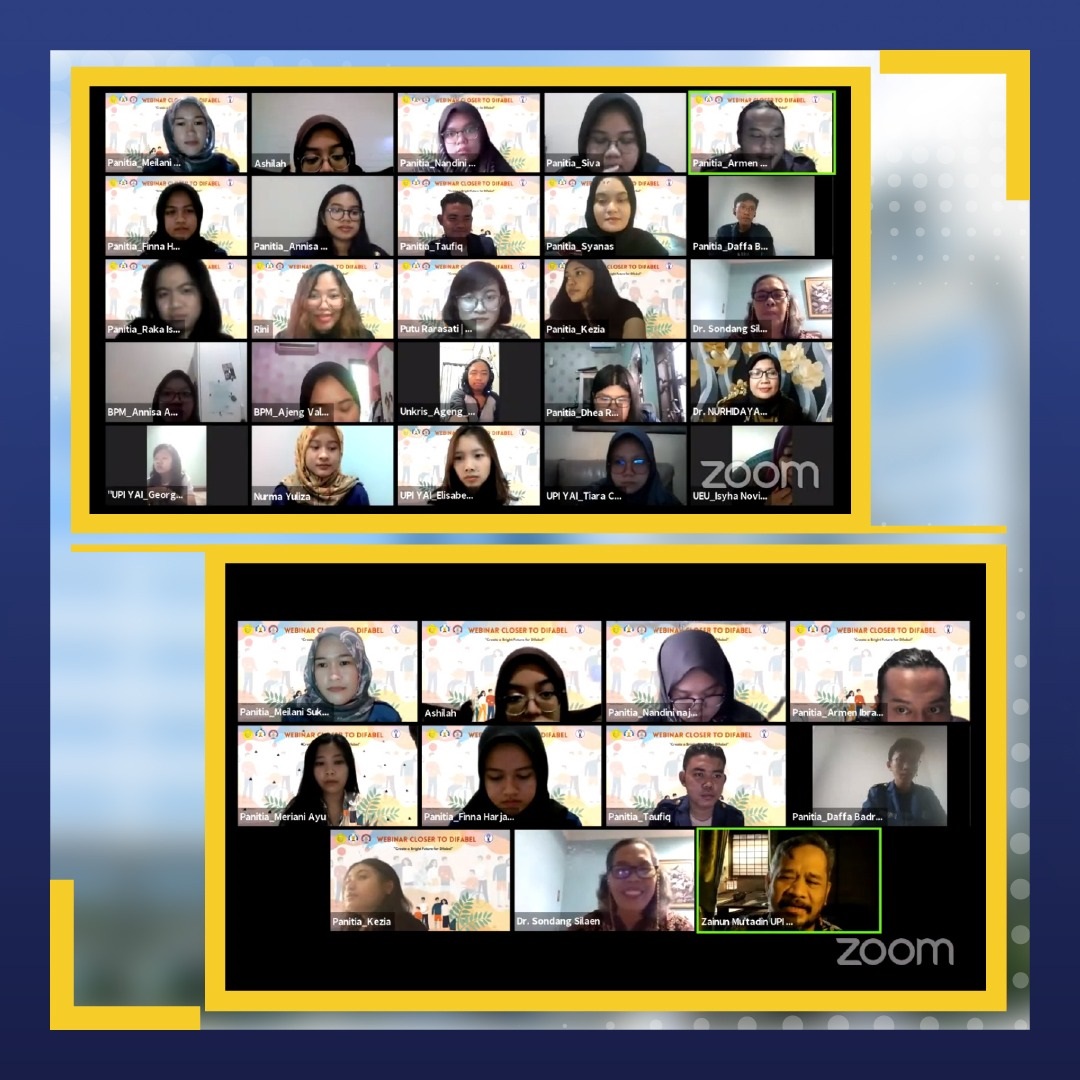 BEM Fakultas Psikologi Universitas Persada Indonesia Y.A.I telah sukses menyelenggarakan kegiatan Webinar Closer to Difabel: "Create a Bright Future for Difabel" yang terselenggara pada Sabtu, 19 Juni 2021 pukul 09.00 - 12.12 WIB dengan metode daring melalui zoom.