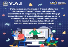 Selamat menjalankan kegiatan perkuliahan bagi kamu Mahasiswa Program Sarjana dan Magister Akuntansi Sekolah Tinggi Ilmu Ekonomi Y.A.I. Semoga di awal Semester Gasal Tahun Akademik 2021/ 2022 kita bisa melakukan yang terbaik serta berprestasi.